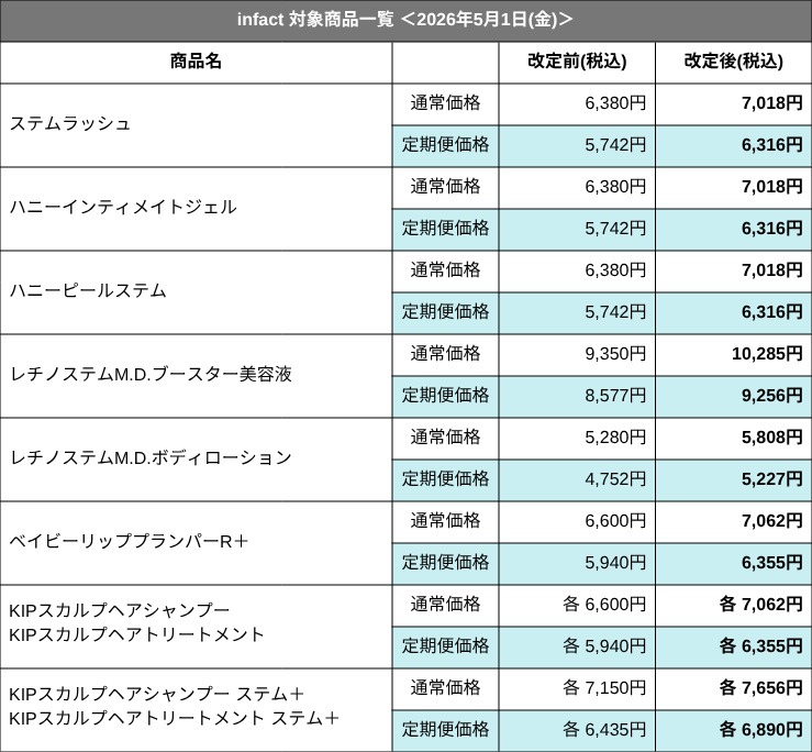 つきましては、改定後のメーカー希望小売価格に沿いまして、2026年5月1日(金)より通常販売価格を改定いたします。